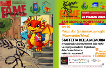 Leggi...In occasione della XXXI Giornata della Memoria e dell’Impegno in ricordo delle vittime innocenti delle mafie, il Comune di San Giorgio Monferrato si prepara a vivere un momento di profonda riflessione e partecipazione comunitaria. L’appuntamento è fissato per venerdì 27 marzo 2026 alle ore 10, in Piazza don Guglielmo Caprioglio (Piazza della Chiesa), dove si […]