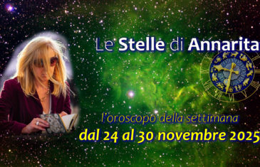 Leggi...OROSCOPO dal 24 al 30 NOVEMBRE Segno fortunato: PESCI Anche Stelle e Pianeti camminano a grandi passi verso l’Inverno. Il Sole è in Sagittario, così come Marte, con grande sprint per i Segni di Fuoco, mentre Mercurio e Venere rimangono in Scorpione, con notevole beneficio per i Segni d’Acqua. La settimana si apre con la […]